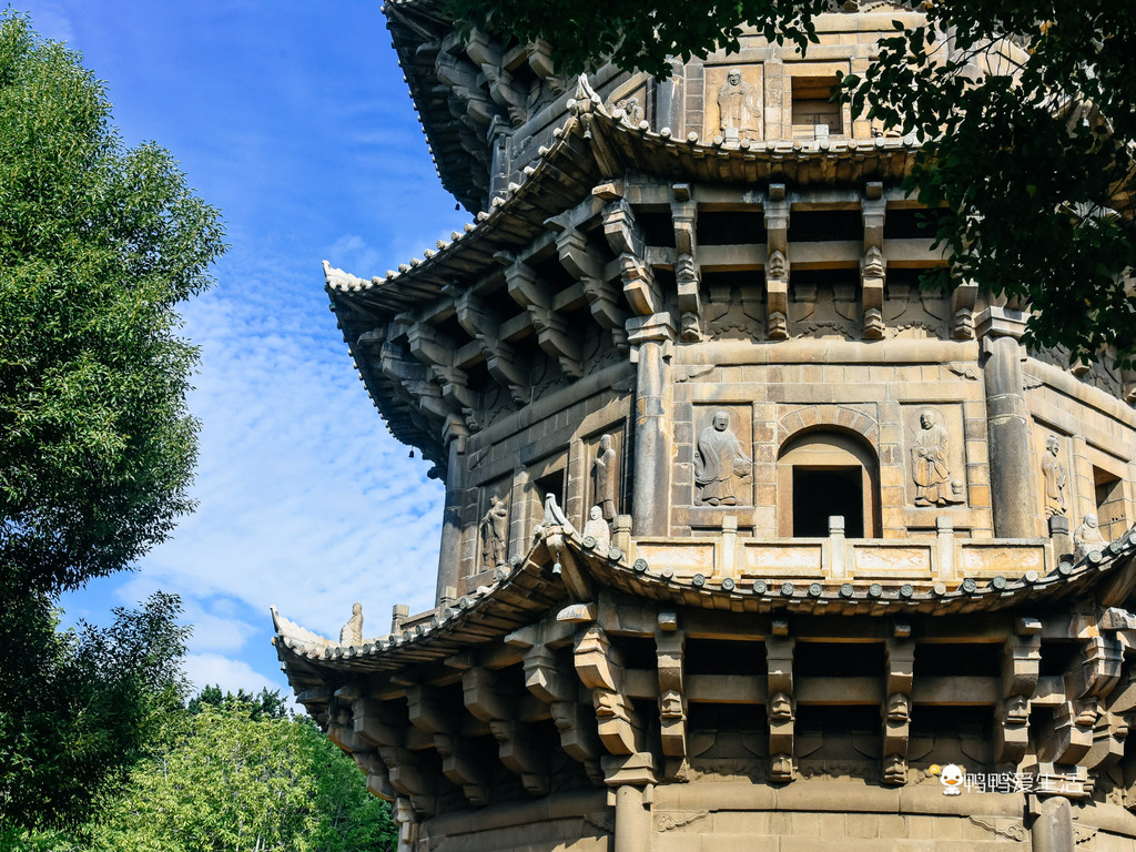六胜塔是一座石塔,为仿木结构的楼阁式建筑,八角五层,每级由塔心、外壁、回廊组成,有券顶门、方龛各4个。全塔浮雕金刚、力士像80尊。塔盖八角翘脊,各雕坐佛一尊,中石叠小塔状,上置金刚宝箧式塔刹。六胜塔另一个与众不同的特点,就是每层塔的横梁上都刻着建造者的姓名和时间 。现在一层还可以进入环绕,但上层是进不去的了。