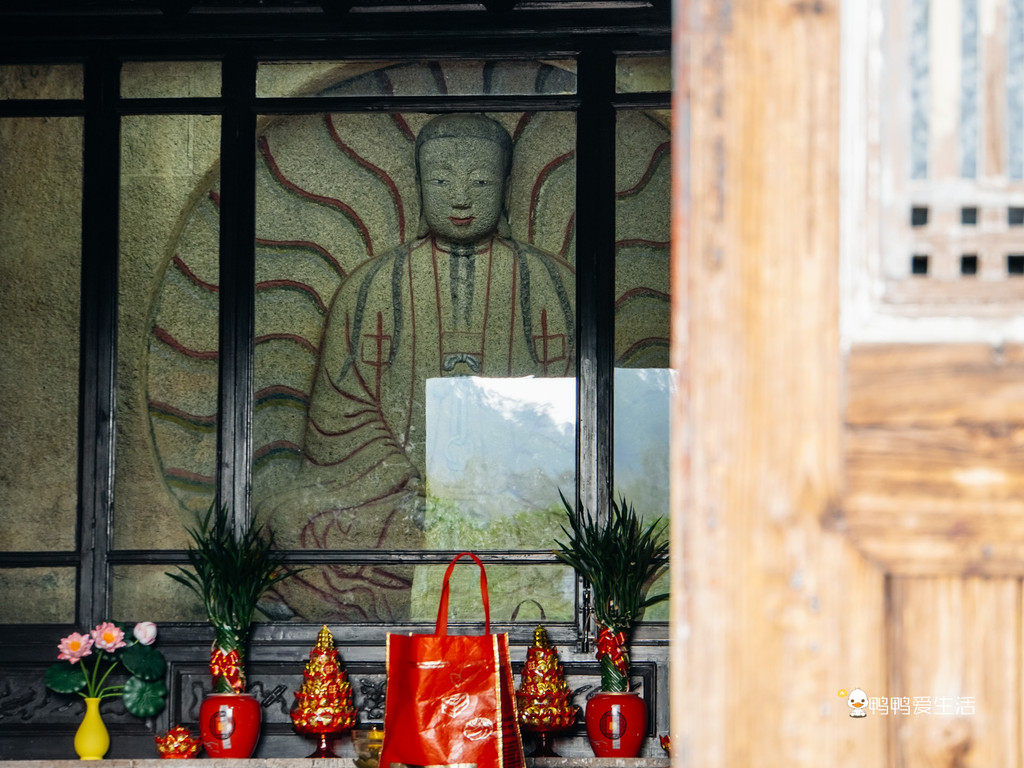 最珍贵的就是庵堂里的这尊石刻造像,现在已经用玻璃罩保护起来,以免遭受破坏。摩尼光佛造像雕凿于1339年,浮雕于庵内崖壁直径168厘米的圆龛上,身着宽袖对衽道袍,结带为扣,盘膝端坐莲花台上,背后有18道毫光。至今还可见到当地信众前来朝拜。