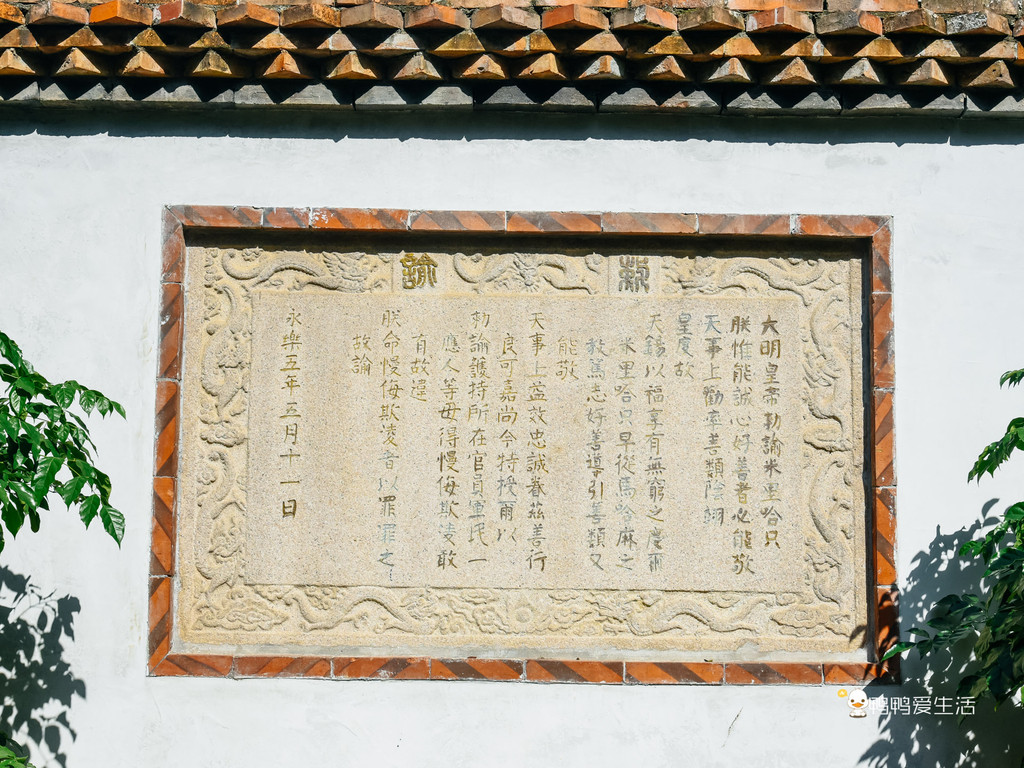寺门内北面围墙正中,完好无损地镶嵌着一方明永乐五年(1407年)刻有《永乐上谕》的石刻,是明成祖朱埭颁发保护伊斯兰教寺院的文告。