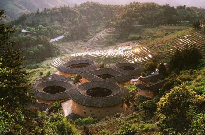 永定土楼:电影《大鱼海棠》的原型,是世界上独一无二的山区民居建筑,中国古建筑的一朵“奇葩”,是“天、地、人”三方结合的缩影,被称为一座没有大门的中国客家土楼博物馆。