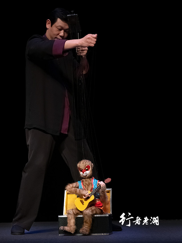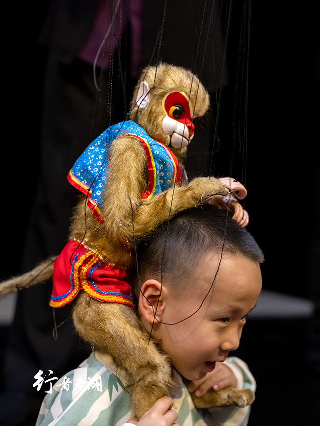 《驯猴》中小猴灵巧地翻筋斗、弹吉他,动作速度之快,令人难以想象,还能抓在人身上,打开宝箱、戴上面具,拖箱而行……虽说配合木偶戏唱腔是本地方言“傀儡调”,但剧场两边有文字提示,即使不看文字,仅看表演也易懂。