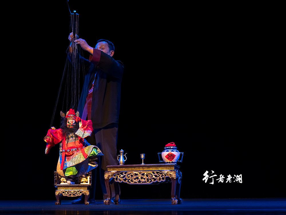 《钟馗醉酒》中,木偶可以从背后的剑鞘中拔出剑来,醉态可掬地舞剑,当他端起酒壶倒酒时,全场一片掌声,因为酒壶里真的倒出酒来了,木偶还能抱起酒缸狂饮,靠几根提线操纵,实属不易。