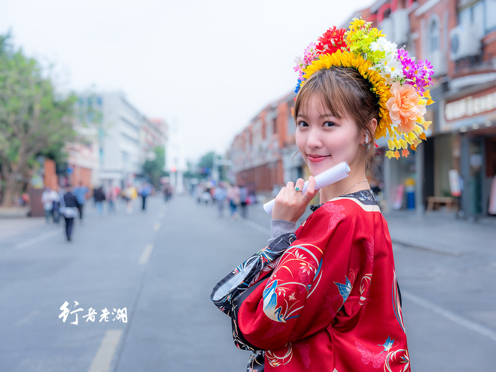 人头攒动的西街弥漫着泉州美食的混合香味,店铺前气雾缭绕,满是垂涎的游客,熙熙攘攘中,店主开心溢于言表。女孩们戴簪花着汉服从眼前飘过,络绎不绝,想起四年前拍蟳埔簪花,偶尔遇见一位戴着簪花的本地妇女,拿着相机追过几条街,如今泉州真可谓半城烟火半城仙。故地重游,不为簪花,不为吃喝,只为提线木偶戏。