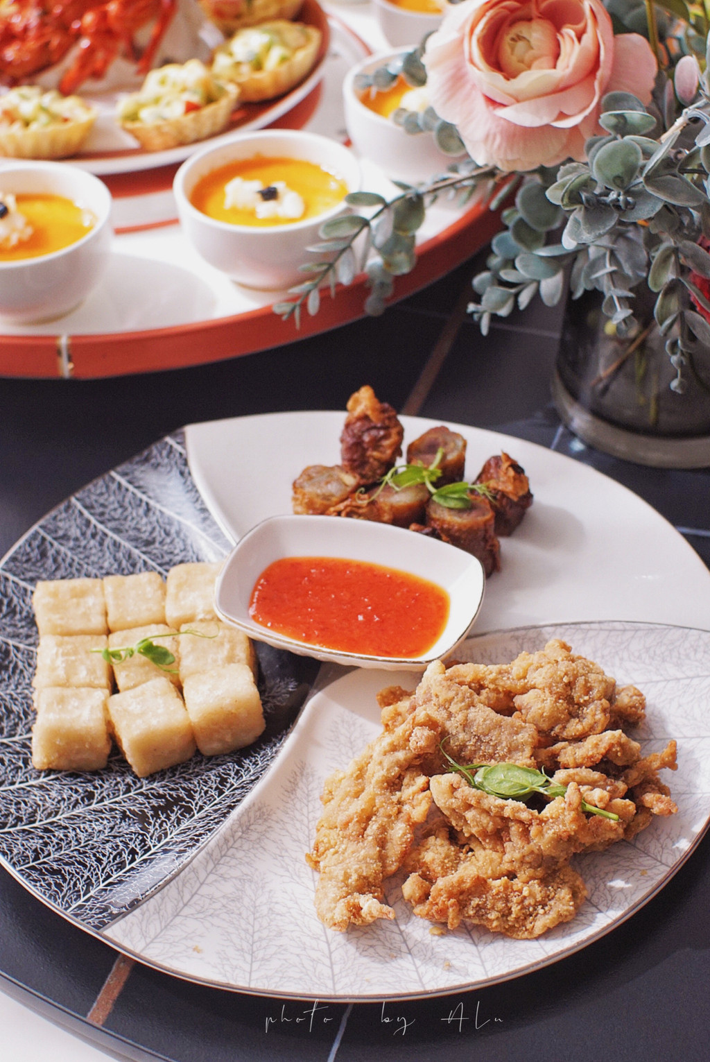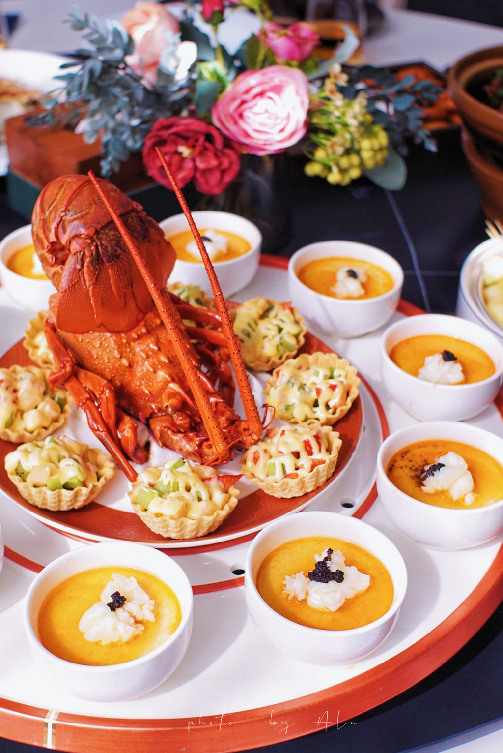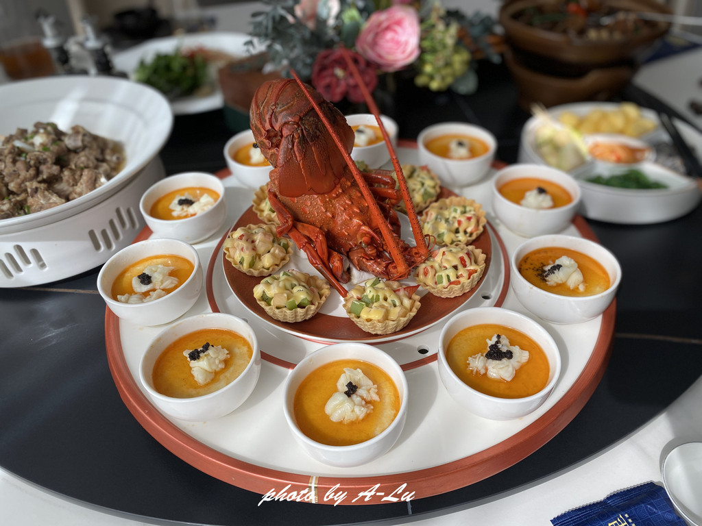 龙腾四海,造型别致大气很有派头,如果宴客那是极好,龙虾肉新鲜Q弹,蛋羹丝滑,妙的是上面还淋着虾油,点缀了黑松露,吃起来贼香。还配有一圈的水果挞,清新解腻。