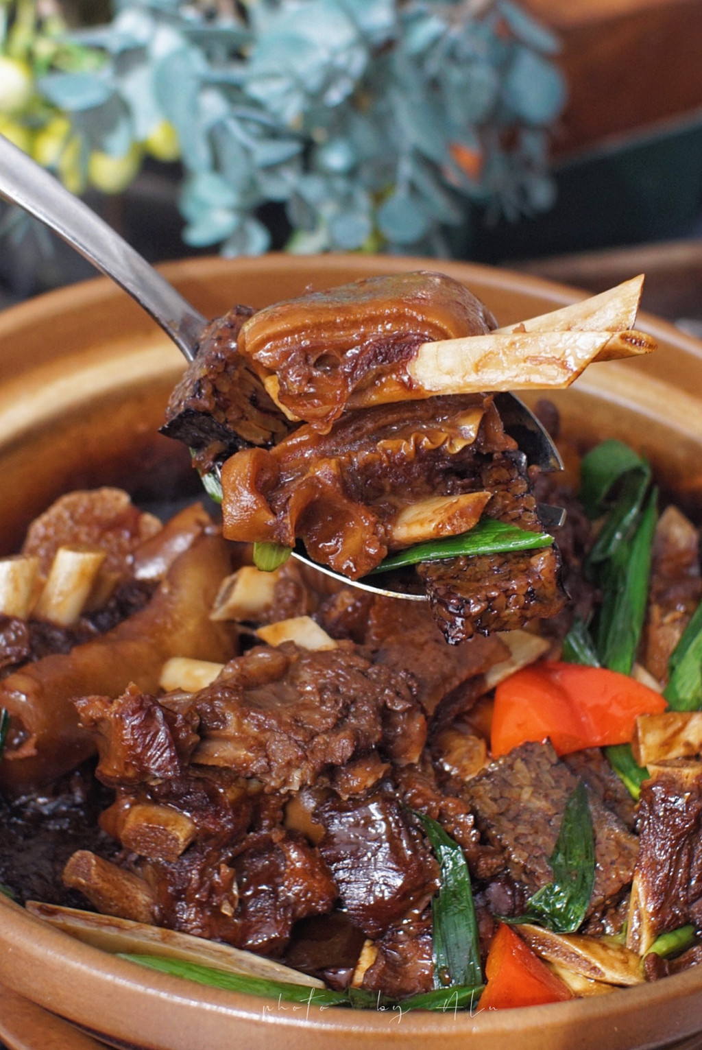 茶油焖德化黑羊肉,选用德化的黑羊茶油焖制不油腻,羊肉不膻,焖得很入味,软烂脱骨,入口即化,米血也好味。