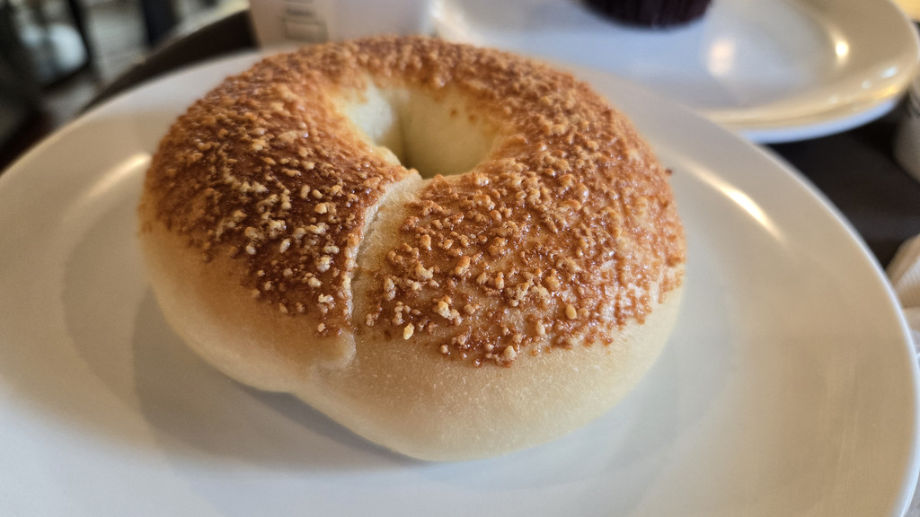 因为已经暴走了好几天,所以今天的火车是下午13:00,上午就可以吃个慢节奏的早餐。那些网红店也不要想了,一年一度的大团圆,也是很理解的。所以就在麦当劳,星巴克这些连锁品牌里选一家。附近也正好有一家星巴克,就踱步过去吃个贝果+咖啡唤醒。