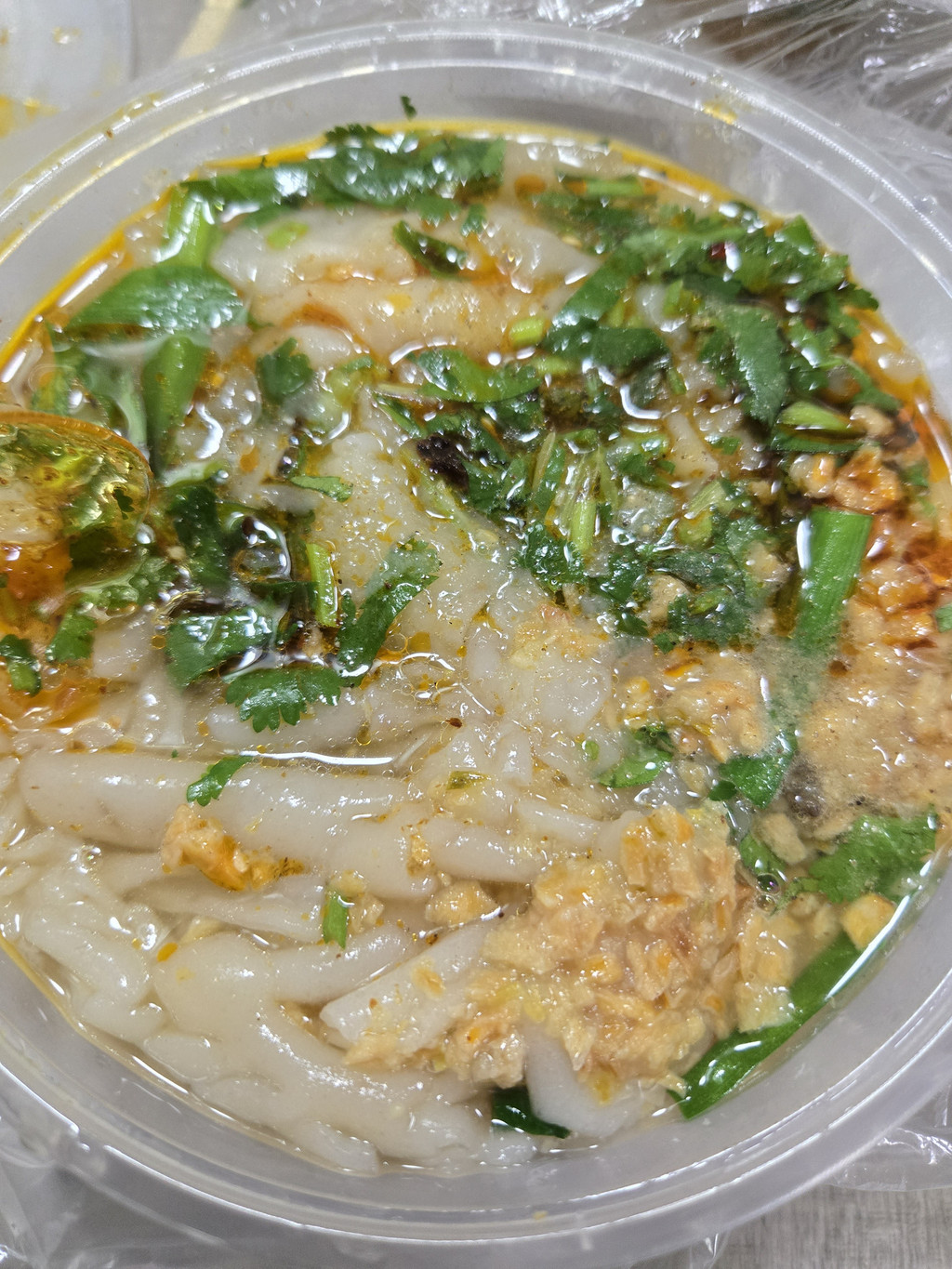 万达正好有瑞幸咖啡,于是起床就往万达去了,没想到原本计划中的店铺还是关门,只能先瑞幸吃个小蛋糕,继续搜店。好在万达的曾三仙米线还是正常营业,我也喜欢嗦粉,那就米线吧。