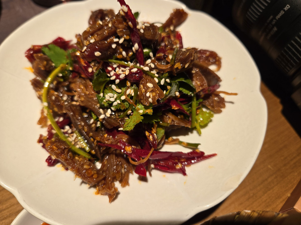 跟其他特色菜相比手撕牛肉反而没有特色,不过还是想象中的味道,也好吃的。