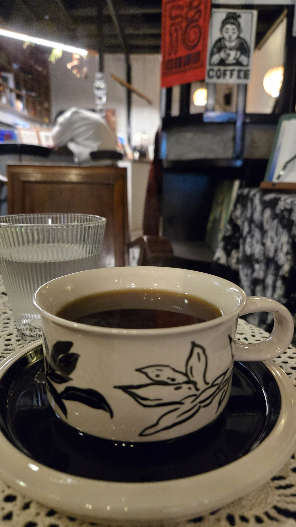 很喜欢这个红砖的楼,正好这里还有一个咖啡小店,叫了个巧克力千层和手冲咖啡,再加一个罗斯福。