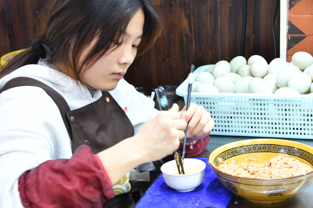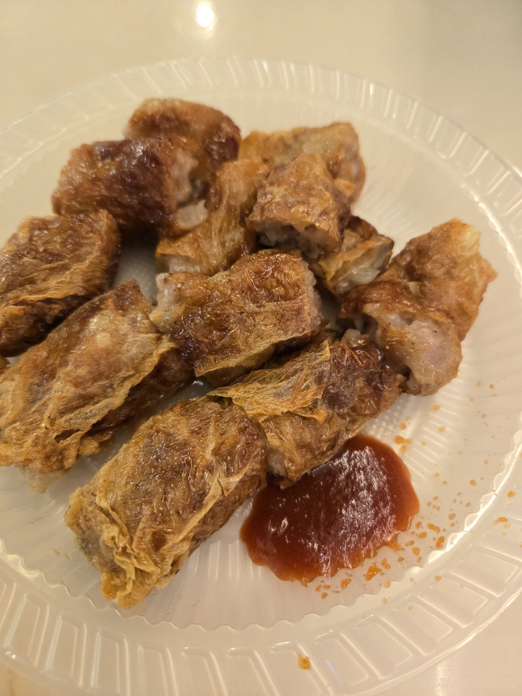 这里已经是几乎人挤人,吃饭也是到处排队。于是在一家所谓老字号随便吃一点快餐。春卷很一般,炒面很一般,倒是炸五香还比较好吃,匆匆填下肚子继续逛,反正这里都是小吃,饿的话随时可以补给。