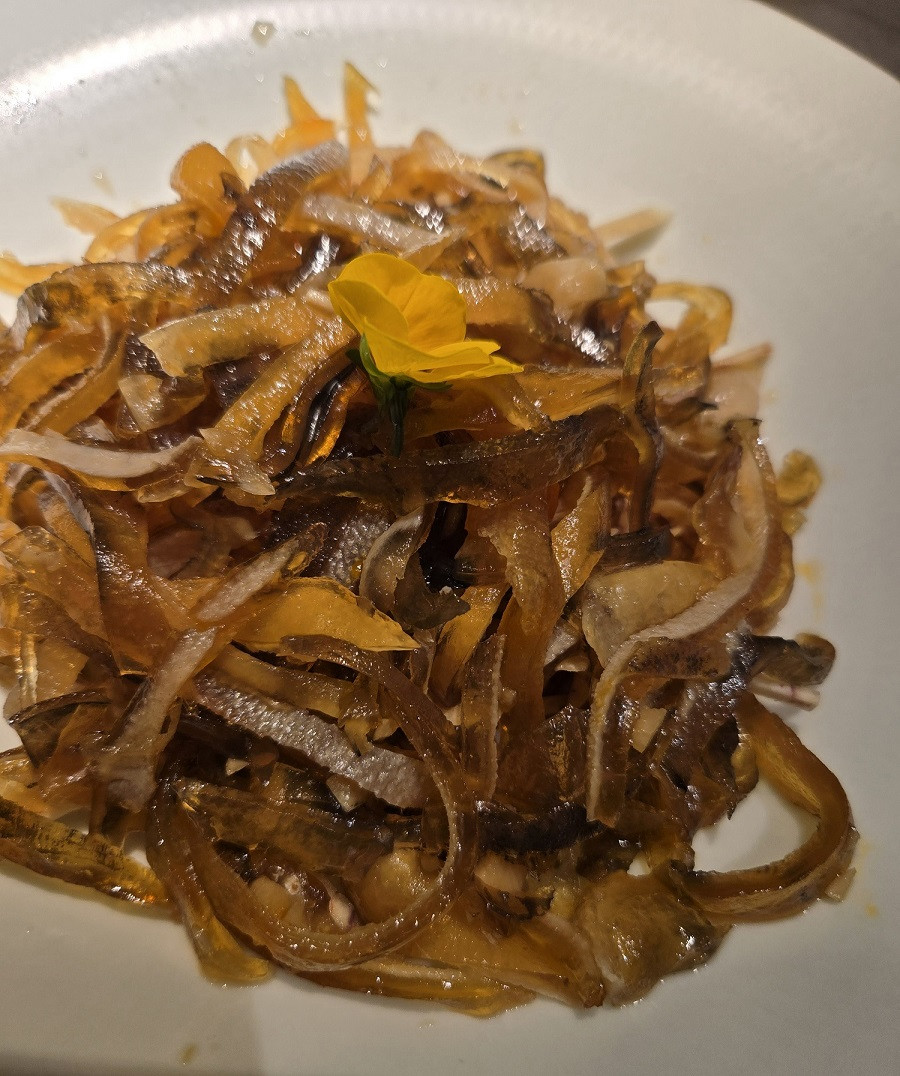 鱼皮是凉菜,非常Q弹,最好吃的居然是里面炸的香脆的地瓜丝。