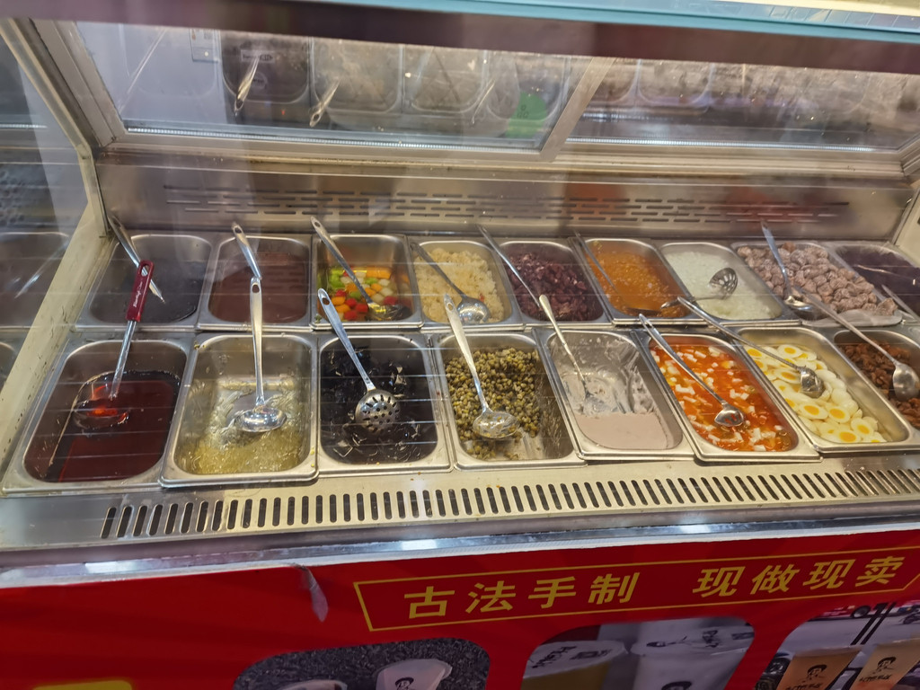 旁边就是著名的天添,但是2家都在排队,所以就选择了悦港。想加什么小菜自己点,会剪到你的碗里。