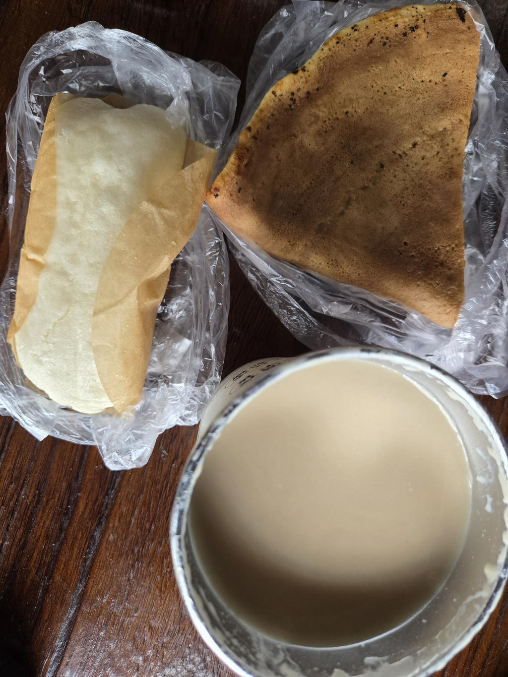 天塌了,本来就是考虑遇到过年这个特殊时期,特意订了含3天早餐的酒店,结果早上起来酒店空无一人也不供应早餐了(前一天晚上路过大堂竟然没有任何通知,前台也没有特别关照)。不知道发生了什么,穿着拖鞋跑到大厅,结果连前台也没有人。好在房间没有停电停水,赶紧叫了早餐外卖(庆幸外卖还可以接单),也因为这个小意外,尝到了花生乳,麦糕粿,满煎糕。