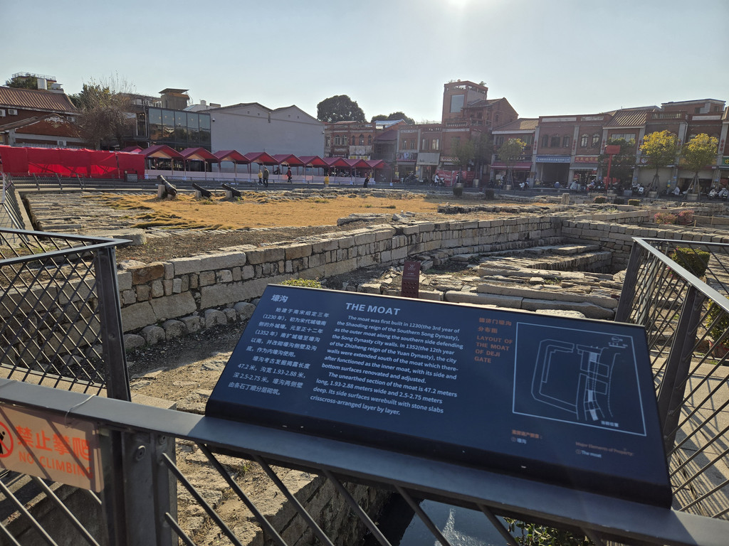 吃饱就可以继续逛逛,于是选择附近的天后宫。天后宫门口有个南宋的壕沟,也没有特别用玻璃拦着,不知道这些砖还是不是南宋的。