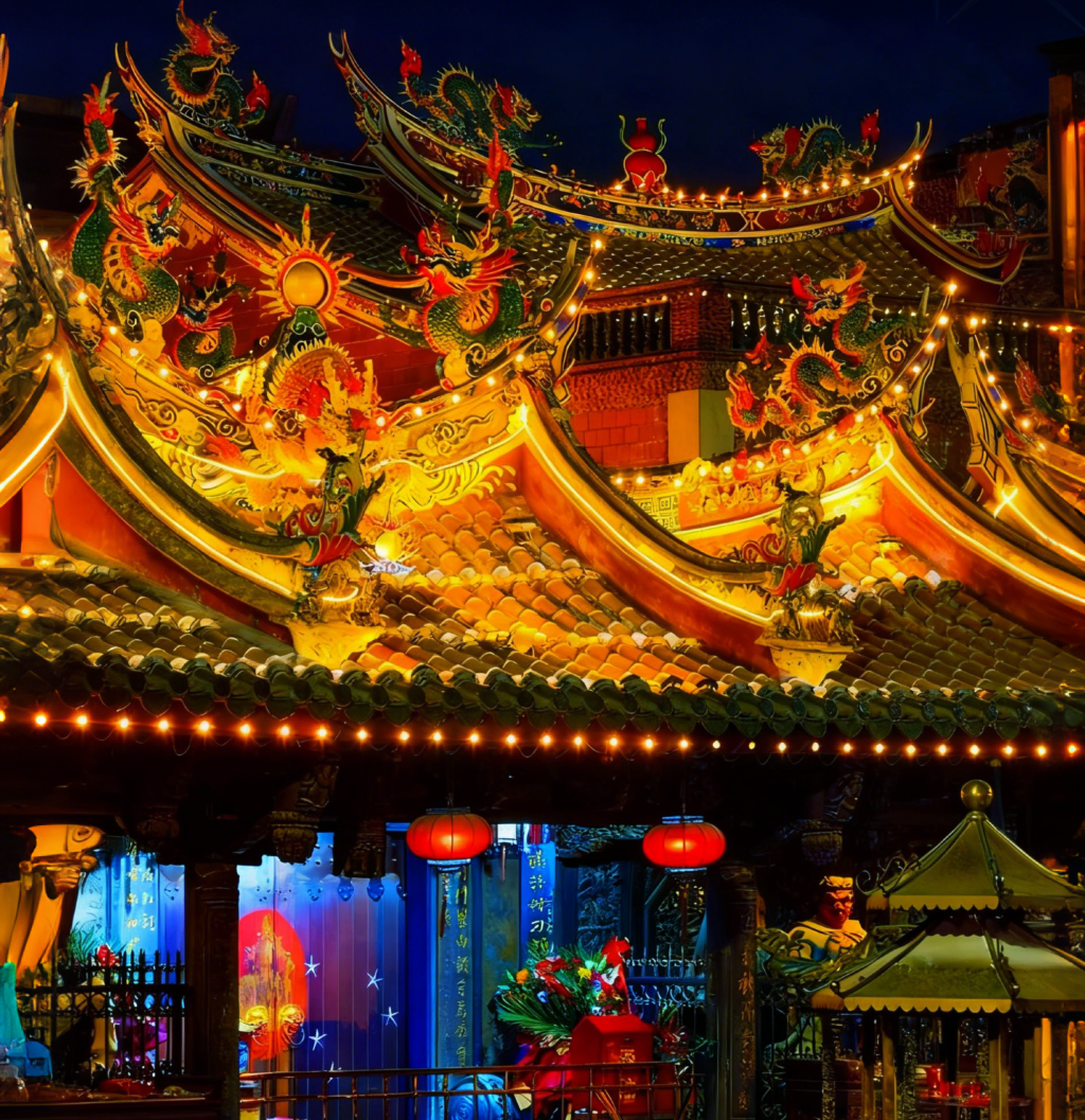 关岳庙,白天的关岳庙香火鼎盛,但夜晚才是它最有魅力的时刻。