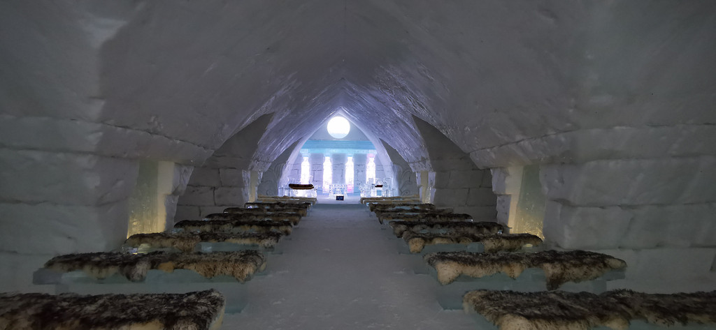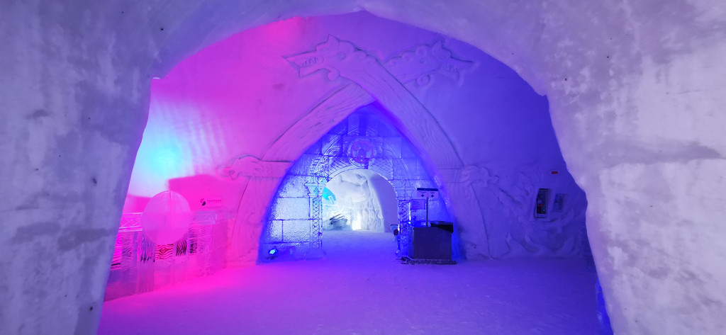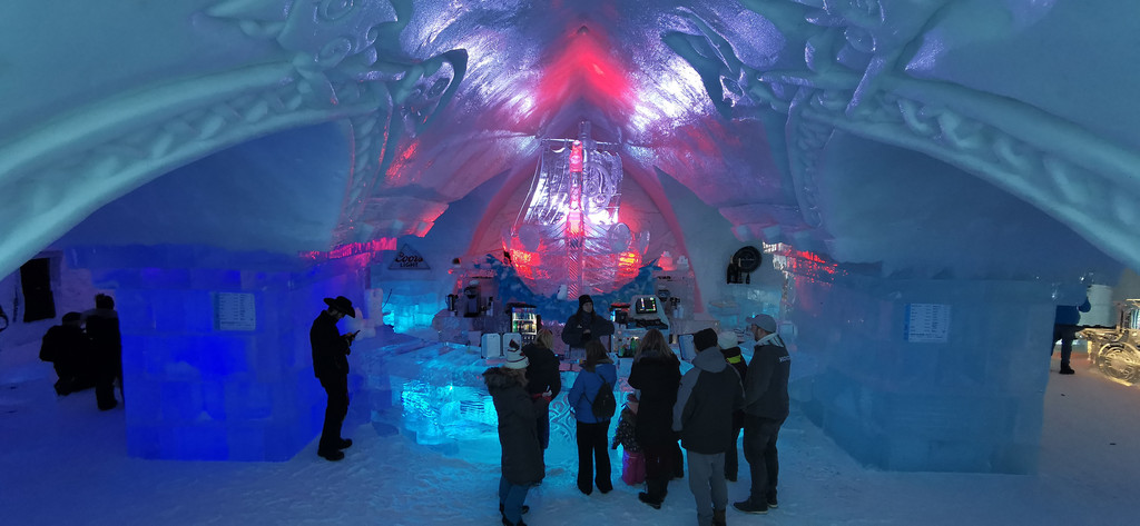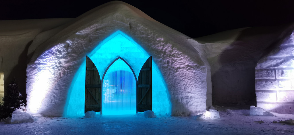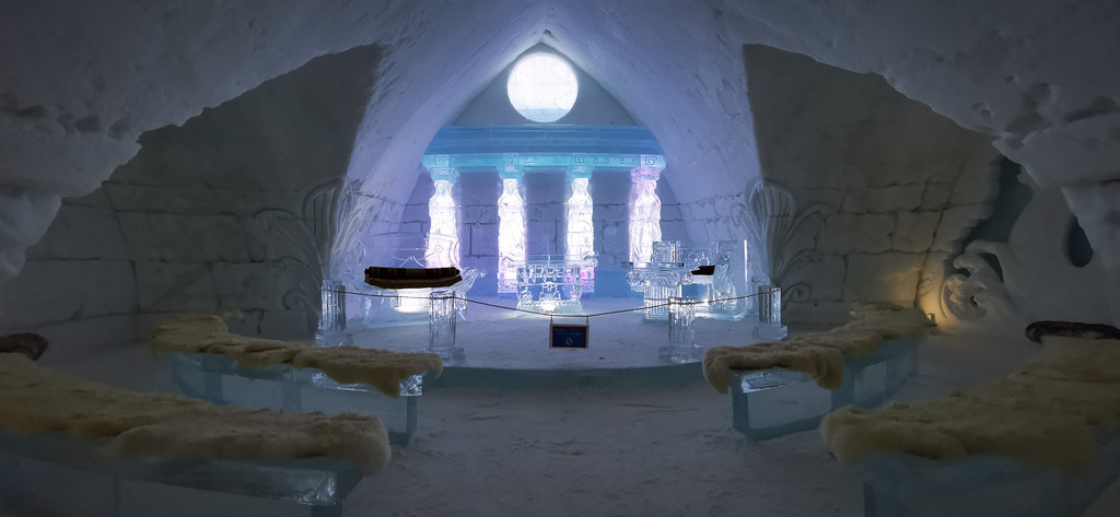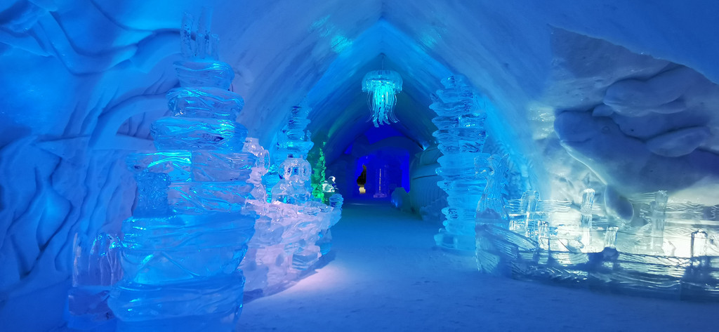 离开这些欢乐的二哈们,我们去往冰宫酒店。魁北克的冰宫酒店是加拿大唯一的冰宫酒店,每年建造冰宫酒店用时需半年左右的时间,每一年又有不同的主题,通常情况下,要消耗掉500吨左右的冰和1.5万吨的雪。