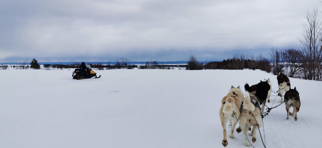 终于坐在雪橇上,跟随二哈领略魁北克的冬天,这真是寒冷的地方,目光所及之处全是厚厚的雪。
