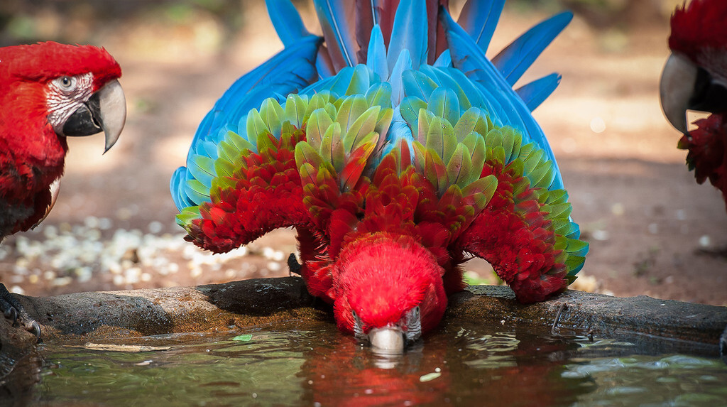 《里约大冒险》的蓝色金刚鹦鹉阿蓝令人印象深刻,尽管现实中这个种类几近灭绝,但它的“亲戚”们——色彩艳丽的红绿金刚鹦鹉和红肩金刚鹦鹉,在伊瓜苏的巴西鸟园(Parque das Aves)却随处可见,成为孩子们喜爱的“彩羽精灵”。