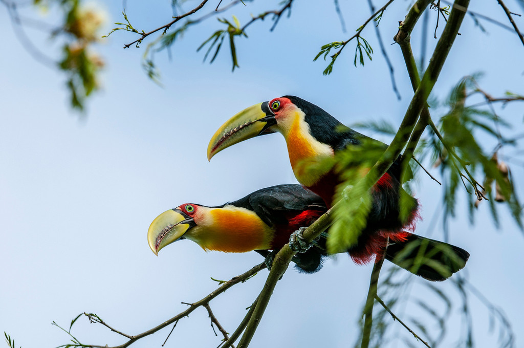 别看它们的大喙夸张,其实非常轻盈,中空结构不仅便于采食高处果实,还能帮助调节体温呢。聪明、灵活的它们总是在树冠间跳跃前行,是热带雨林最具代表性的鸟类之一。