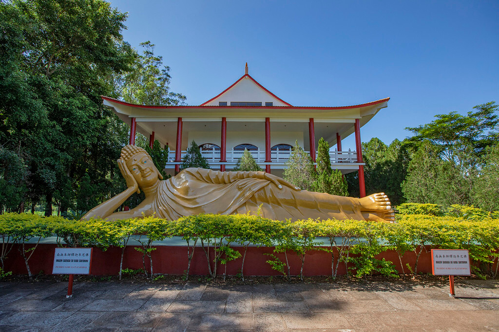如果想要在伊瓜苏的热情与活力之外,寻找另一种宁静,那么承天寺无疑是理想选择。坐落在山丘之上,这里能俯瞰巴拉那河与友谊大桥的辽阔景致。作为拉丁美洲最大的佛教禅修中心之一,承天寺内分布着百余尊大小不一的佛像,其中还有少林寺的复制建筑,庄严又神圣。