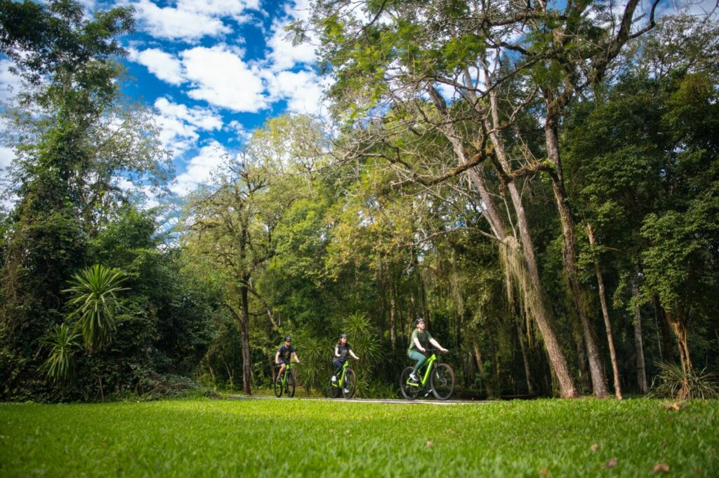 如果想要更深入地体验雨林,兼顾冒险与静谧,不妨参加黑井小径骑行体验。这条由专业向导带领的路线全程约18.5公里,往返穿行于浓密的大西洋森林之间,沿途风景层层递进,最终抵达伊瓜苏河畔——瀑布汇流之前最宁静的一片水域。