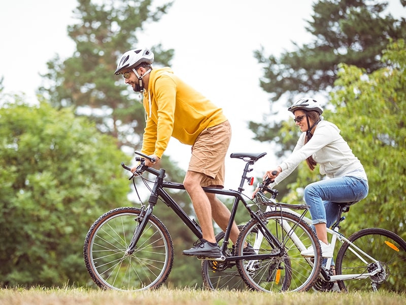 2、佩戴安全装备:骑行时请务必佩戴头盔、手套,穿着适合骑行的服装。自行车也要保持良好状态,检查刹车和轮胎气压。