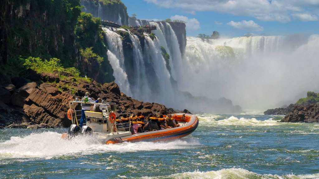 旅程共分三部分:先乘电车穿越2公里的伊瓜苏国家公园雨林,沿途可饱览700余种热带植被。接下来由向导带领徒步600米林间小道,讲解当地动植物的生态奥秘。最后换乘快艇沿伊瓜苏河(Iguassu River)疾驰,在浪花飞溅中以独特视角近距离仰望瀑布群的磅礴气势,感受急流冲击带来的肾上腺素飙升。