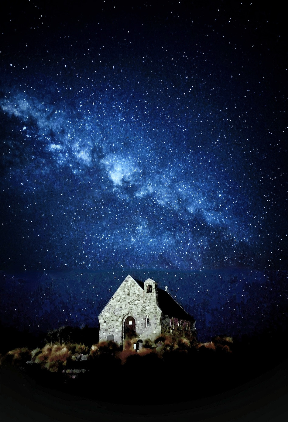 凌晨时分,我们被窗外的星空吸引,一路走到好牧羊人教堂。教堂不大,白色的石头建筑在夜色中显得格外圣洁,旁边的特卡波湖在月光下泛着淡淡的银光。刚开始天空还有些云,可没过多久,云层渐渐散去,无数的星星慢慢出现在天空中,越来越亮,最后,一条淡淡的 “光带”出现在夜空里——那就是银河!