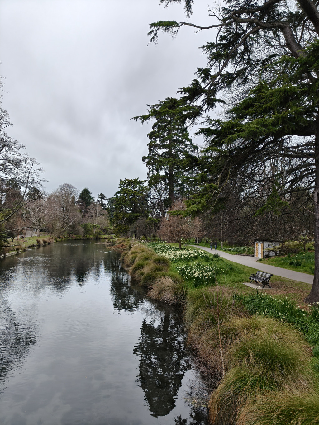 前一晚从奥克兰飞往基督城的航班意外晚点,落地后找班车司机沟通,说原定取车的门店早已闭店,心里暗自懊恼 “出师不利”。好在租车公司那位华人小哥很nice,沟通清楚情况后,第二天一早竟直接把车送到了酒店门口,省去了我们奔波的麻烦,也让南岛之旅的开篇多了份温暖的人情味。早晨的基督城,带着新西兰特有的慵懒气息。我们沿着街道随意散步,脚步不自觉地被沿途的风景牵引:先是走进莫那花园,园内的花卉错落有致,露珠还挂在花瓣上,微风拂过便簌簌落下;接着逛到海格公园,草坪修剪得整齐柔软,偶尔有鸽子踱步,一派岁月静好;再到基督城植物园,参天的古树遮天蔽日,空气里满是草木的清香,连呼吸都变得轻快起来;最后驻足纸壳教堂,这座由纸板与木材搭建的建筑,在阳光下透着简约而坚韧的美,静静诉说着城市的过往。