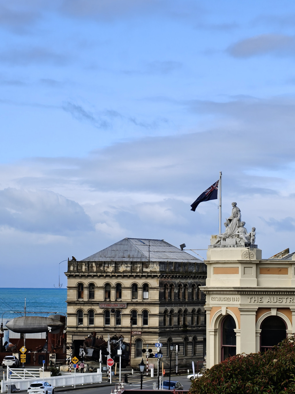 爬上小镇的山顶观景台,视野一下子变得开阔:整个奥马鲁小镇尽收眼底,红色的屋顶错落有致,远处的山脉连绵起伏,山脚下的海洋泛着粼粼波光,山、海、小镇交织在一起,像一幅色彩清新的油画,随手拍一张都是壁纸。之后去了维多利亚遗迹区,这里保留着不少19 世纪的欧式建筑,石板路、复古的路灯、雕花的门窗,处处透着典雅的气息,而且游客不多,适合慢悠悠地逛,随手拍几张照片,都像是自带复古滤镜。