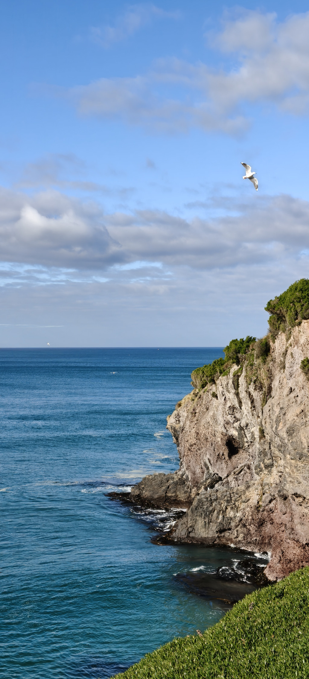 沿着小路开车到奥马鲁海边,眼前的景色瞬间开阔起来:湛蓝的海水拍打着礁石,卷起白色的浪花,海鸟成群地在海面上盘旋,偶尔落在沙滩上,见人靠近也不飞走,反而歪着头像是在 “打量” 我们。早就听说奥马鲁的小蓝企鹅会在黄昏归巢,可惜我们下午要赶路,没能等到它们——不过也算有意外收获:远远看到几只海豹慢悠悠地从海里爬上礁石,肥嘟嘟的身子在那蠕动,偶尔翻个身,样子真是笨拙又可爱。