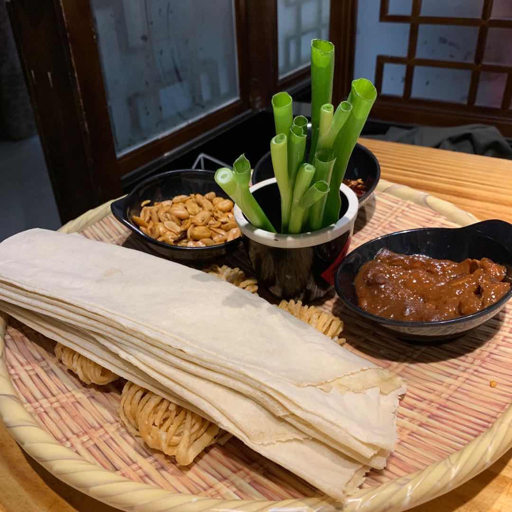 正宗的山东煎饼,饼加鸡蛋,只卷油脆馓子、大葱,抹酱,味道竟然不输时尚浮夸的“仰望”之流,让我们仨一试难忘。后来我们在曲阜城里的饭馆也点了“煎饼卷大葱”,味道也不差,虽不比现烙的香脆,胜在“摆盘”精致可人。