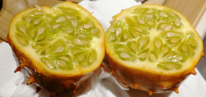 沿街店铺很多,卖姜糖的占了很大比例,买了姜糖和弥猴桃干。正值弥猴桃下来的季节,我们花几块钱买了几个,挺好吃。在街上看挑担的卖的水果没见过,他说是火神果,好奇心驱使花15块买两个,吃起来像黄瓜,而且籽太大,上网一查原来学名刺角瓜,葫芦科黄瓜属,难怪!还看到一种很漂亮的山楂大小的海棠色果子,像蜡做的一样,没敢买。