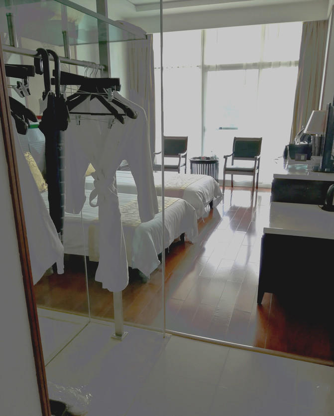 从岳阳到常德一路碧绿,近处是整齐的田野,远处是形态平缓的山峦,高速上基本没车,好走又养眼。到常德只为歇脚,选了柳叶湖边的柳园锦江酒店,所以没进城。按说常德以前也是个交通枢纽,算是个繁华之地。这家酒店也是新开张,有会议,客人不少。酒店规模很大,大堂就上百米宽,从这头走到那头挺费劲,我们住在北楼,走到南楼的餐厅花了十分钟。房间也很大,落地窗外是酒店的花园,远处是柳叶湖,浴缸也面对着花园,健身房、游泳池设施完备,很开心的入住体验。只是房卡只给一张,还要用它取电,有些不便。另外人手可能不够,我有一次出门没带门卡,和前台说帮我开门,上楼等了好几分钟不见人,又打了两个电话、等了几分钟才给开了门。硬件没问题,软件待开发。