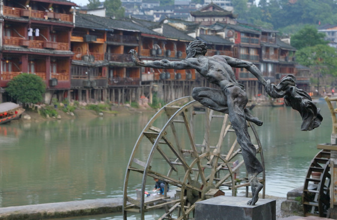 古城开发得太过成熟,城里已经没有了住家,成了一个大商业中心,全是餐饮、销售、民宿,外来人给外来人服务,让人不知来这里体验什么,好在改建依然保留了古老的外观,窄窄的街道,只是内部现代化、舒适化了,没有人在沱江里洗衣了,洗衣机放在街上,排出的水沿街流。早上有人在江边表演洗衣,江水看着很混浊。古城很小,再加上同质化的商业,更加显得没有什么好看的、好玩的、好吃的。现在不收入城费了,但参观门票过高,一个沈从文故居就要40元,熊希龄故居没开,它前面有个很气派的熊公馆,我误以为是故居,进去后发现是个民宿加首饰工艺品店。