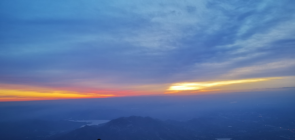 天色越发明亮,云层也越来显得淡而厚,红色渐渐转黄,近处一弯明月高挂,远方山川湖泊轮廓初现,不是所有的日出都要看到太阳!“只有天在上,更无山与齐”,这才是泰山,五岳之尊之气象,壮哉!