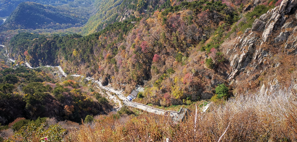 从南天门索道下到中天门,乘景区交通至天外村景区出口。