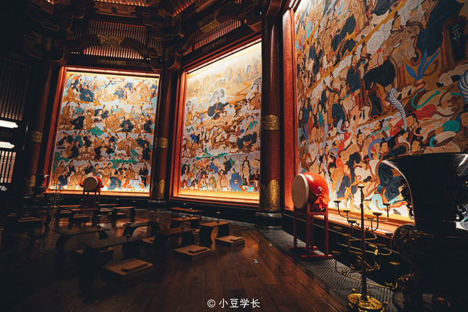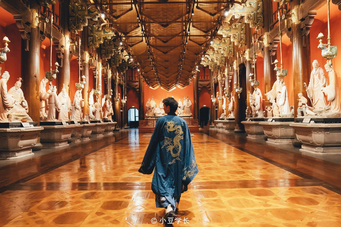 除了刚刚看到的仁厅外,信厅,以青色为主色调,智厅,以黑色为主色调,突出先圣先哲的智慧高度与深度。