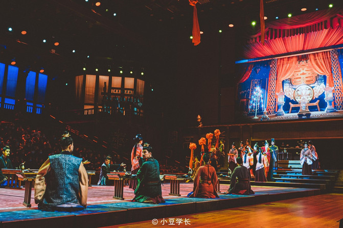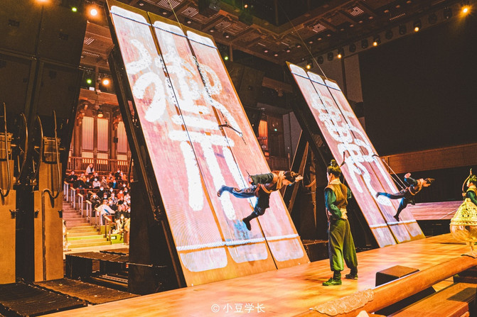 男子要学习骑马、射箭等武艺技能,而女子或多或少的要学习持家之道。舞台的场景不断的切换着,坐在前排的我目不转睛的看着演员们的每一个动作,时而拉弓射箭,时而在舞台升降之下“飞檐走壁”。