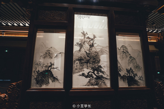 走进去激动不已!怎么可以如此繁华,金碧辉煌随处都是奢华建筑,走进大学堂的迎宾大厅,最先看到的是六幅纯手工打造的双面刺绣,在灯光的照射下显得薄如蝉翼,但刺绣的一针一线又显得那么的生动传神,最震撼的是双面竟然是一样的。