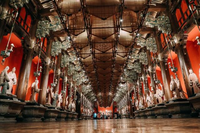 雕梁画栋、琼楼玉宇,是我最直接的观感。在浩浩汤汤五千年的中华文化里,儒家文化很长一段时间都是其主线,由学堂内的一座座小型雕像无声讲述着。厅前"高山仰止"牌匾,将文化传承的脉络延展与《诗经》,愿言敏德,啜菽饮水。