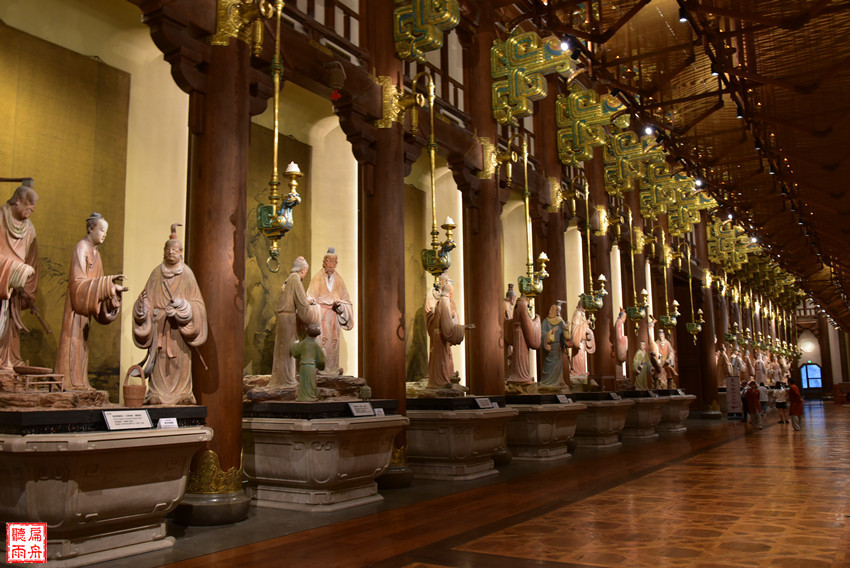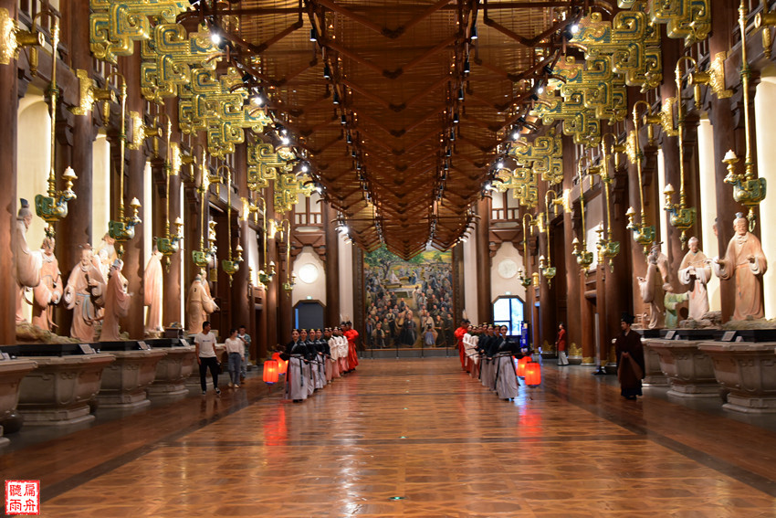 大学堂依山而建,是一座儒家思想智慧与现代建筑艺术结合的大型宫殿,学堂内集贤厅、大学之道、七十二贤廊、仁厅、义厅、礼厅、智厅、信厅、礼乐堂等组合成一个有序的、仪式化的文化空间。漫步在大学堂里,你会发现大学堂既是文化的学堂,又是艺术的殿堂,集中展示了东阳木雕、山西泥塑、苏州刺绣、福州漆画、景德镇陶瓷画等中国传统艺术经典,富丽堂皇的宫殿及精美的艺术品巧妙传神地表达了以孔子为代表的儒家思想文化。