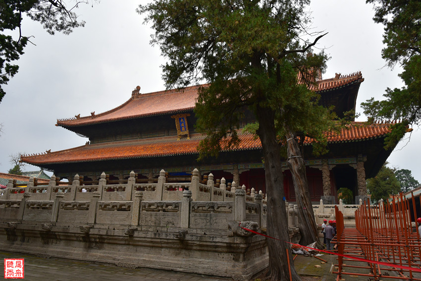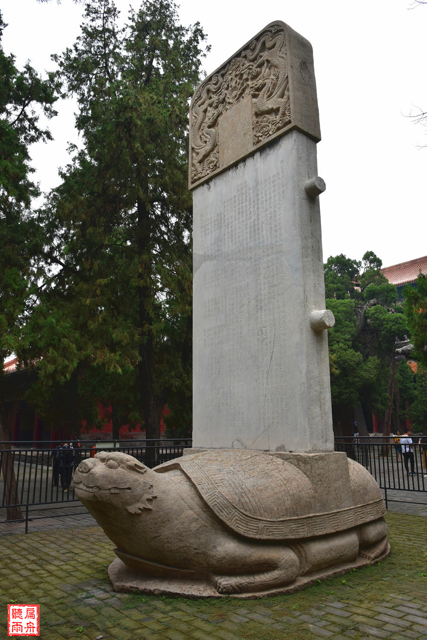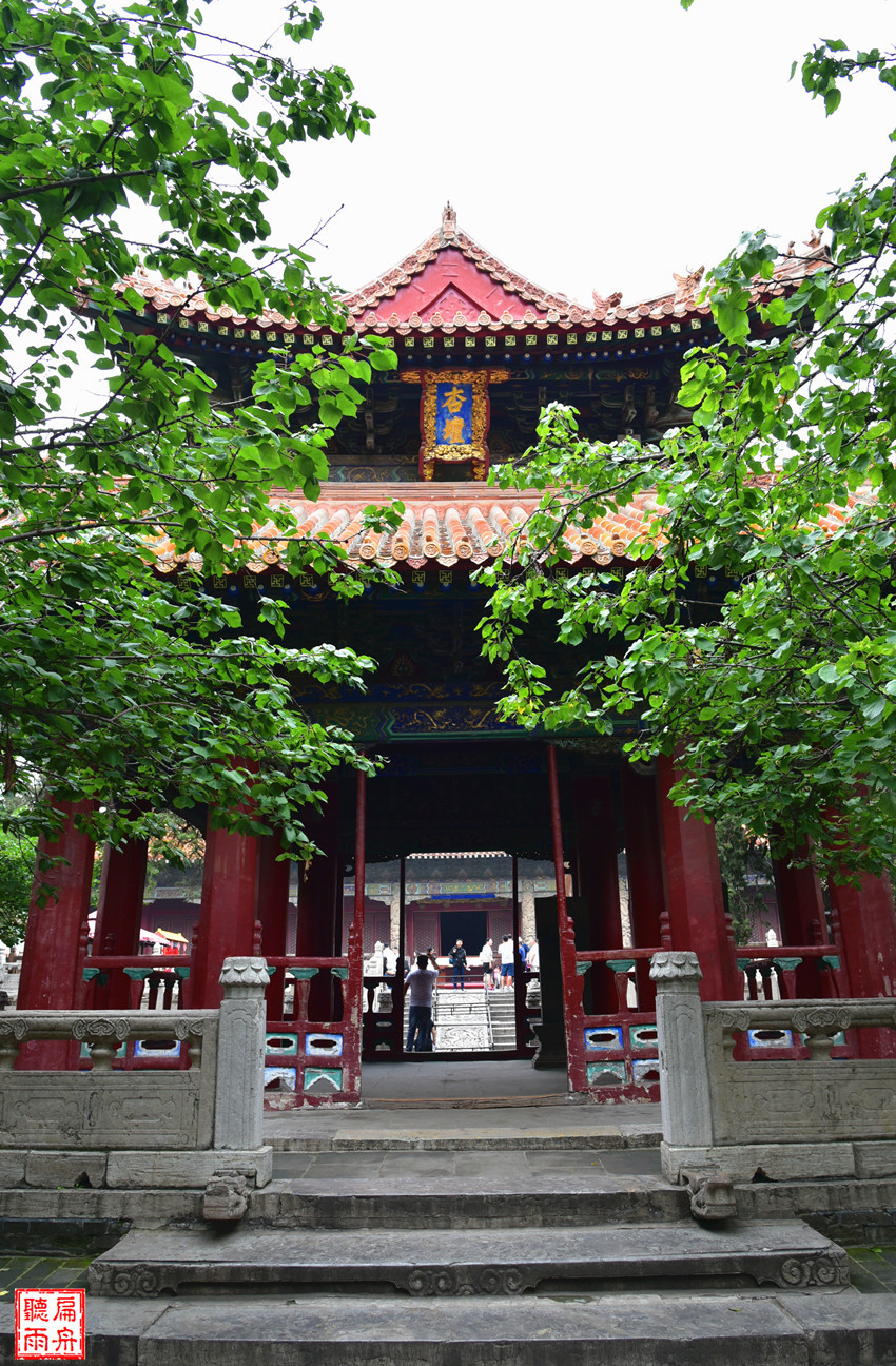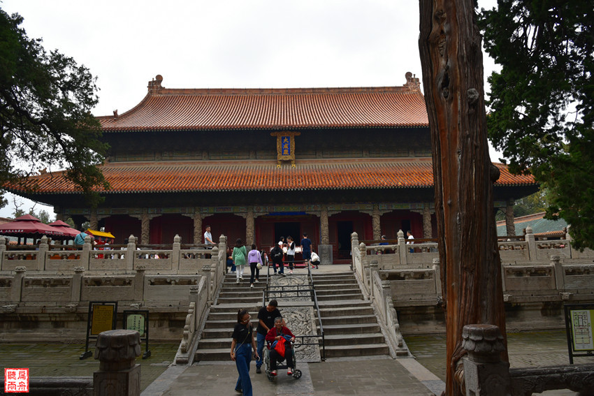 穿过望水楼、弘道门、大中门、奎文阁、十三碑亭、大成门、杏坛等建筑,就来到了孔庙的主体建筑大成殿前。
