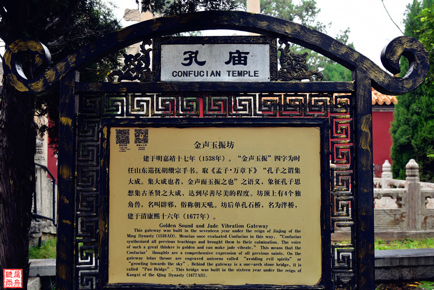 首先映入眼帘的,是被孟子誉为“金声玉振之地”的金声玉振坊。“金声玉振”四个字,表达了孔子之思想集古代圣贤之大成,达到了尽善尽美的高度。