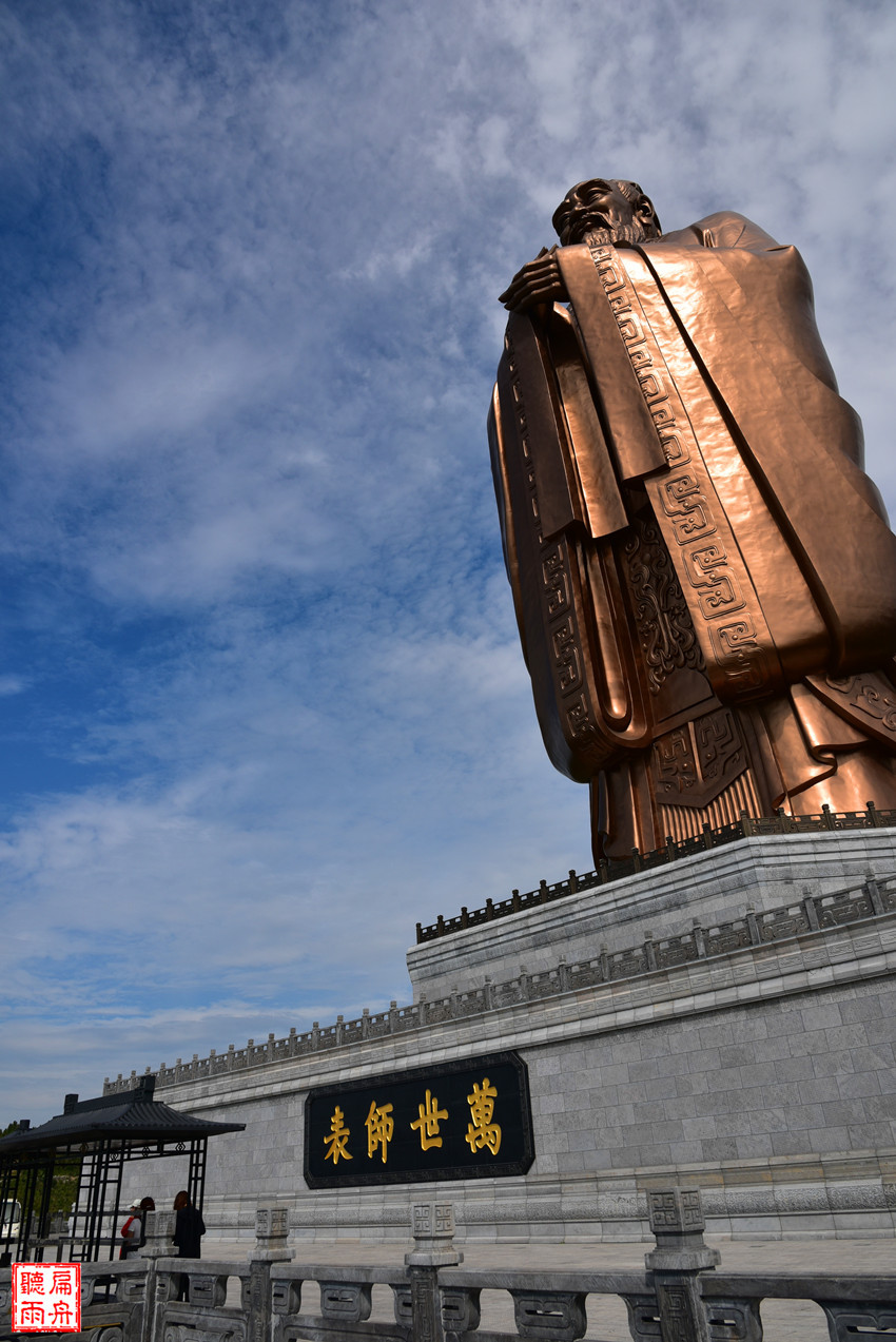 2015年落成的孔子像高72米,按照“可亲、可敬”、“师者、长者、智者”的形象定位进行塑造,是统领尼山圣境文化空间的制高点,前往瞻仰的一路之上,一系列尊师明礼的情境演绎,一遍遍地教你做一个有修养知礼仪的文明人。