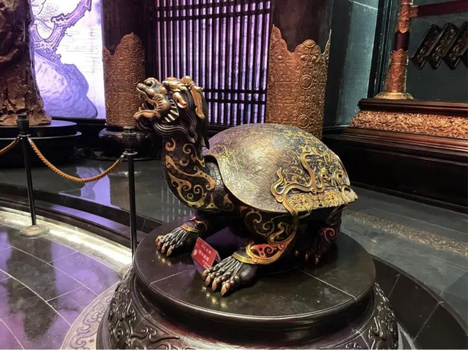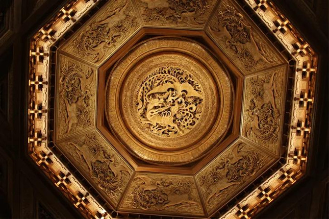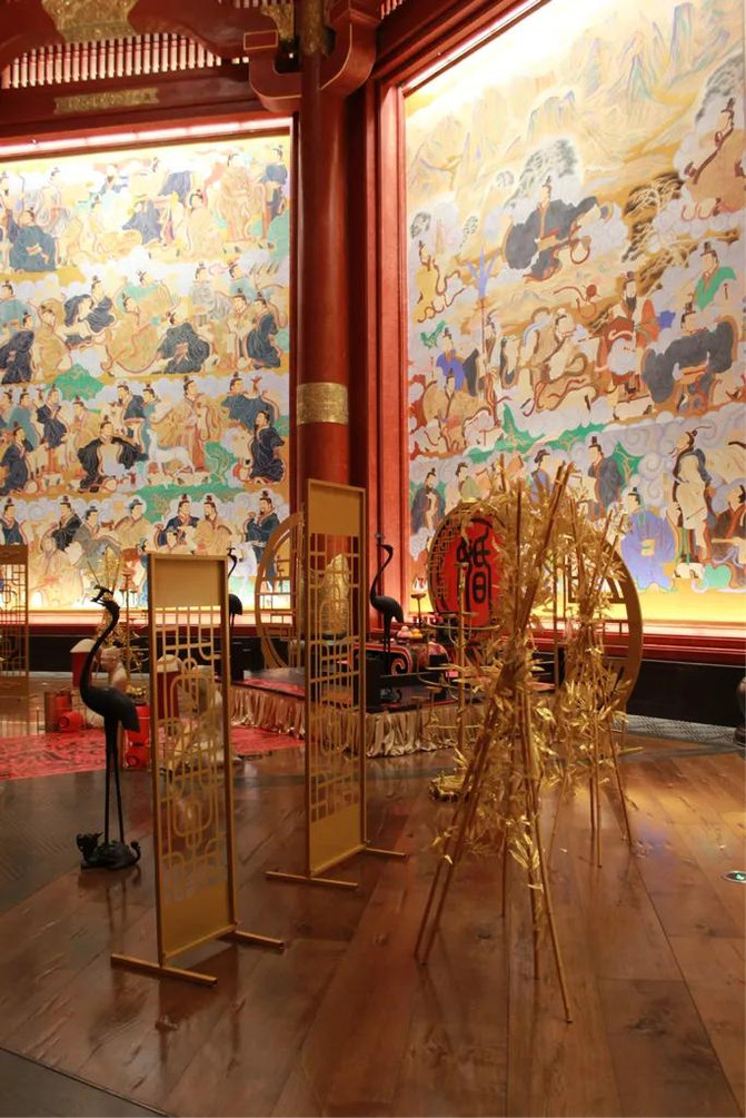随后买了一个香包助眠用,继续前往到我上午没有参观完的以儒家“仁、义、礼、智、信”为主题的五个大厅,仁厅为五厅之首,气势恢宏,内部装饰以金色为主,以“仁”为主题。信厅,以青色为主色调,信厅顶部斗拱采用传统木建筑结构中的榫卯结构,体现工匠的高超技艺。智厅,以黑色为主色调,信厅顶部藻井为苍穹与星空的变换设计,突出先圣先哲的智慧高度与深度。义厅,主调为白色,采用粉彩堆白的传统艺术形式,《中庸》说“义者宜也,尊贤为大”,义并非江湖义气,而是指我们待人接物应该向圣贤看齐,做到适宜适度。礼厅顶面彩绘文化主题为凤凰祥云,双凤约150平方米,流金溢彩,足踏祥云,气吞寰宇,其形灵动,其势磅礴,两只凤凰首尾相接形成环形旋转的姿态,增强了四周云纹的美感。
