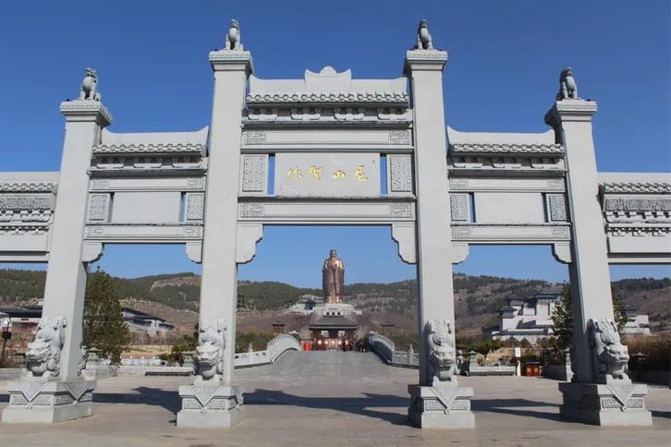 拍完后继续坐着观光车前往了孔子像,而孔子像的对面是孔子湖,孔子湖位于五川汇流之处又称圣水湖,原为尼山水库,而孔子像在天命大道上方,坐落着孔子像,两侧有三千颗杏树,代表着孔子的三千弟子,七十二贤人。