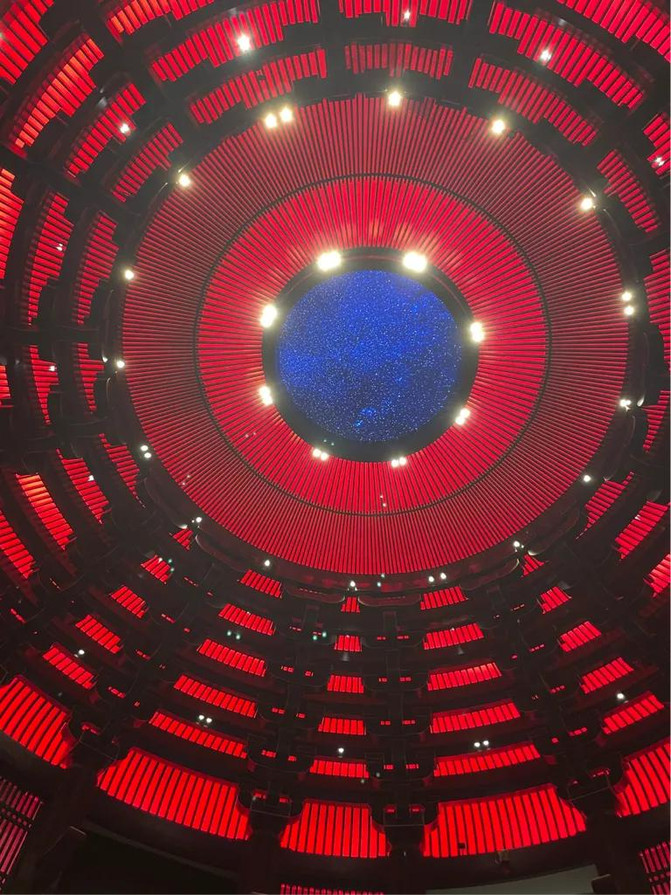 随后又去往了我晚上因为没来的急赶上的大学堂,大学堂的名字来源于《四书》中的《大学》。“大学之道在明明德,在亲民,在止于至善。它的宗旨就在于弘扬光明正大的品德,使人达到至善的境界。包含迎宾大厅、台阶大厅、七十二贤廊、礼厅、义厅、仁厅、智厅、信厅、先贤廊、礼乐堂等有序的、仪式化的文化空间。其中灯光秀、手读论语、大学之道、金声玉振等演出和互动活动,都在大学堂内部。