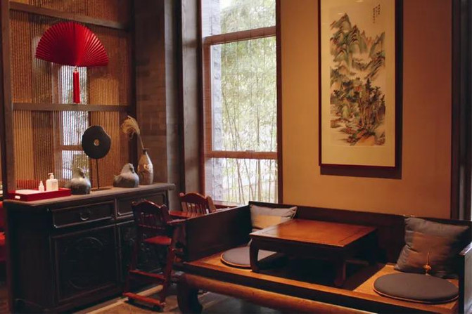 至于房间内部呢,依旧是带着古意的中式风格,可以看得出来,房间里的桌椅是全套木制家具,居然还有笔墨纸砚,真是有心了呢。笔墨纸砚可以用来写字,书架上的书也是真书而不是摆设,伸手就可拿来看。房间墙壁上有着地暖的开关,打开后不一会儿房间就特别暖和,此外呢,床头柜上还有一个现代时钟,这时钟也是设计的非常走心了,不仅有一个iPhone插座既插既充,还有2个usb接头方便有的朋友电子设备多而充电头带少了的困恼,而且床垫也非常柔软,躺下去就根本不想起来了,由于本人非常不喜欢睡硬板床,这床还可以为我提升睡眠质量呢。而且洗浴间也格外的大,里面共有2个洗漱台,还有浴缸,热水也很赞,洗漱用品用的欧舒丹,当你玩完一天泡个热水澡,简直不要太舒服了。