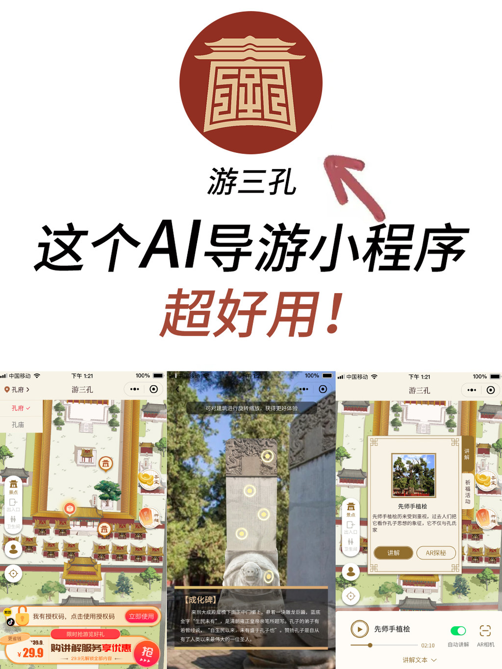 在进景区前,我在曲阜三孔公共号下的购买了个“游三孔”导览,方便进入景点后进行讲解。